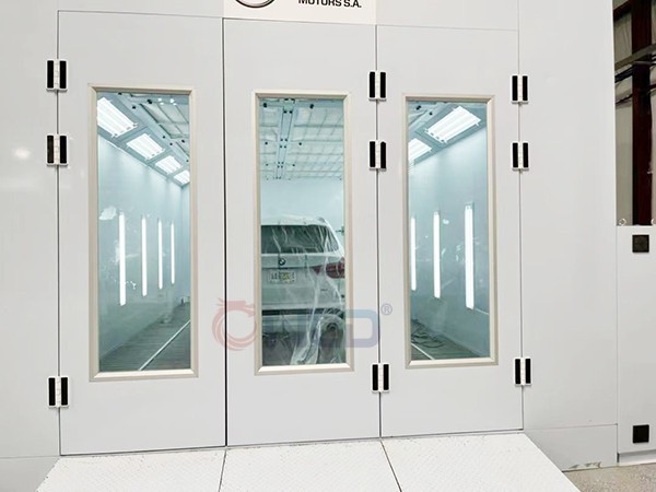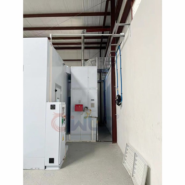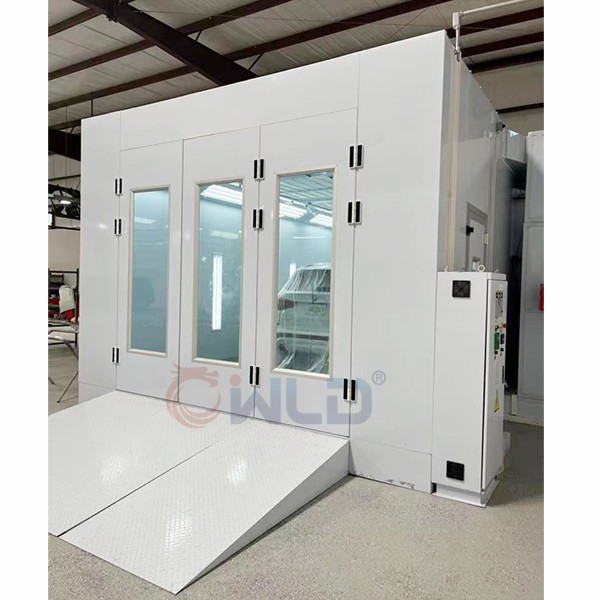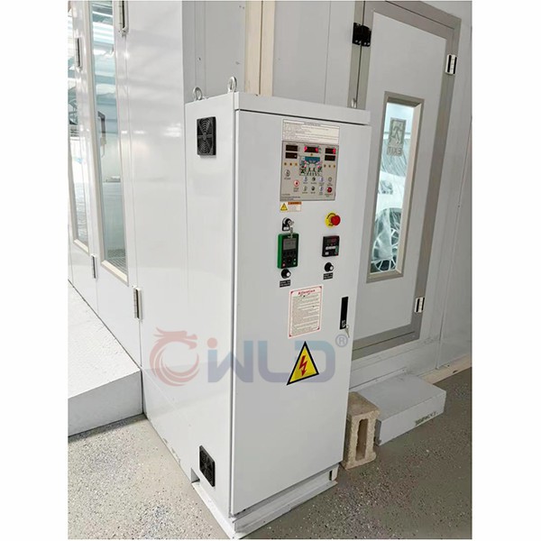 L8.24xW4.3xH2.8m. The fans of spray booth has Variable Frequency Drive so that the speed of fans can be controlled to save energy. Meanwhile,it has FS20 LPG burner. Therefore,it is very environmental friendly.